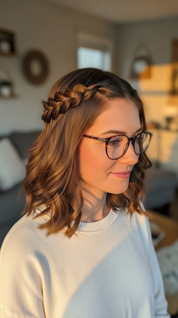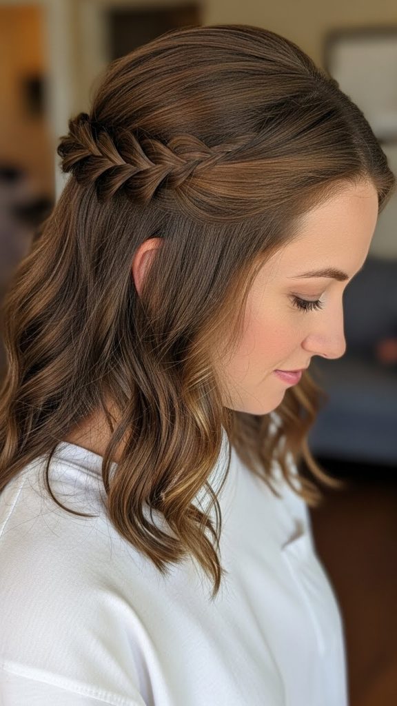 This style looks elegant and works well for medium hair because it adds visual interest without requiring extra tools.