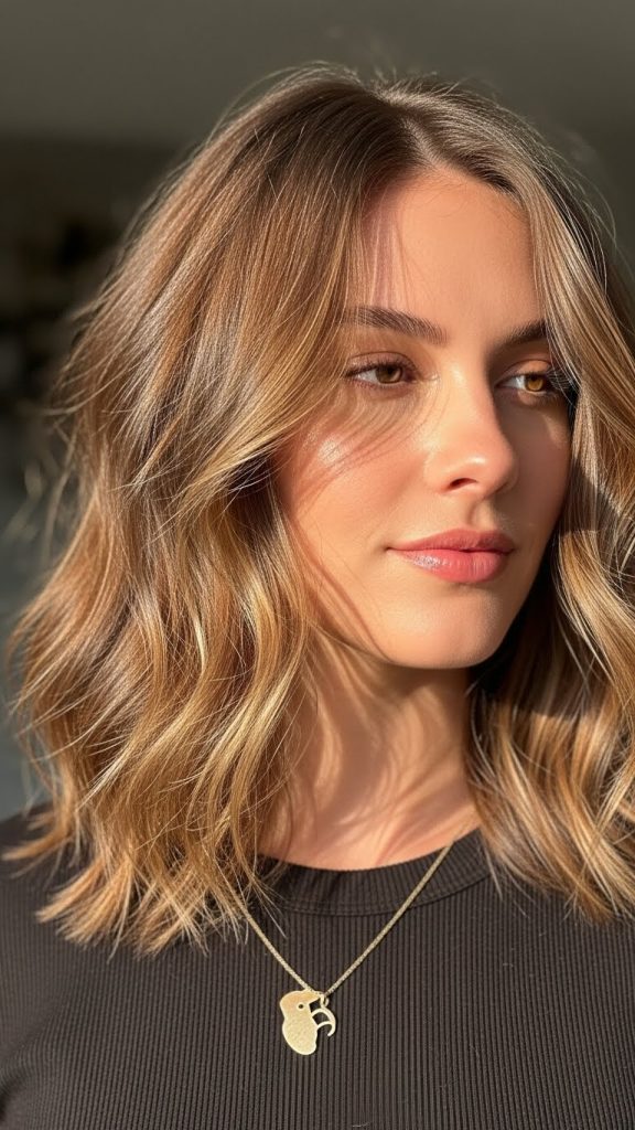 This hairstyle works beautifully for medium hair because there’s enough length to create volume without heaviness. It pairs well with casual outfits, oversized sweaters, or even minimal makeup looks.