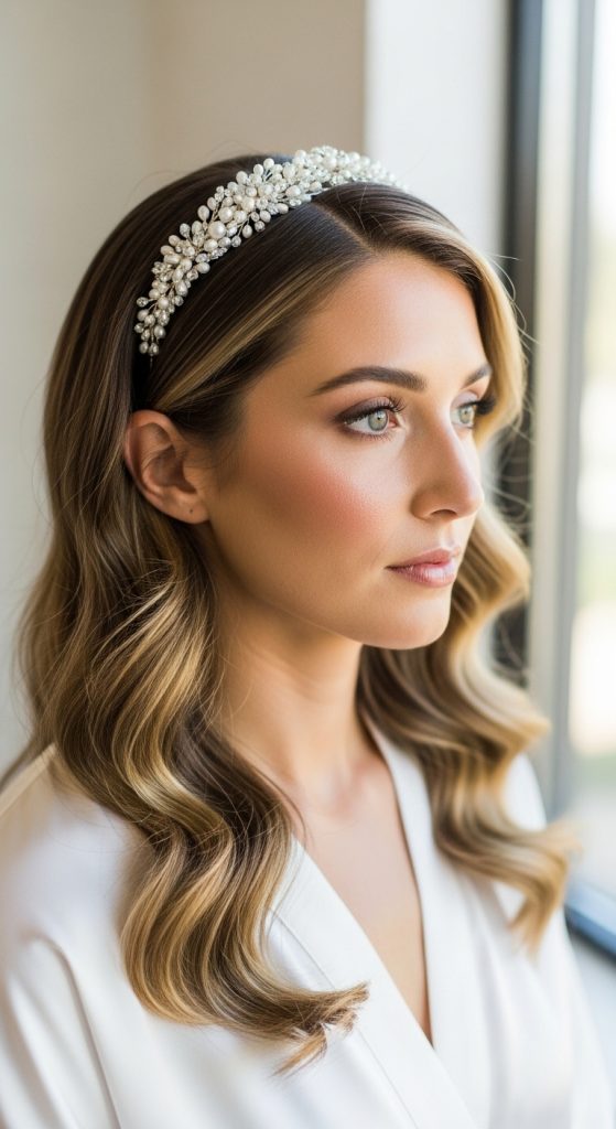 Idea 2: Side-Parted Glam Waves with Decorative Headband