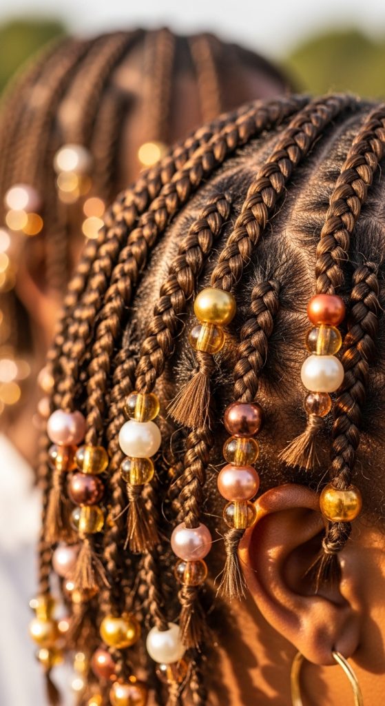 Adding beads to short braids introduces decorative elements that enhance the overall design. This style is commonly used in DIY projects because it allows for customization without altering the braid structure. The beads serve as both decoration and finishing detail.
