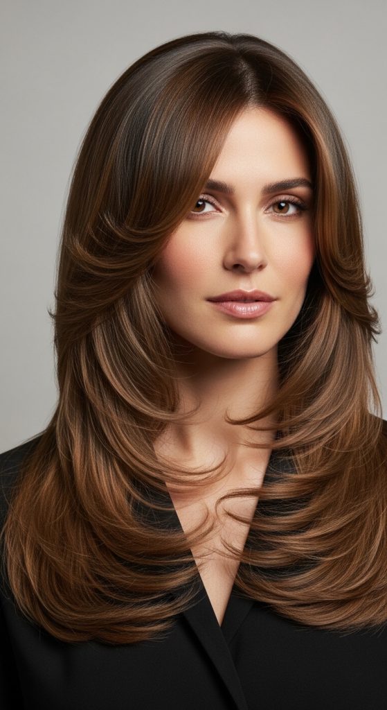 Face-framing layers are widely used in modern hair design because they guide attention toward the center of the face. When combined with long layers, they create a balanced structure that prevents the hair from appearing too heavy. This technique is especially useful for adding shape to long hair without dramatically reducing length.