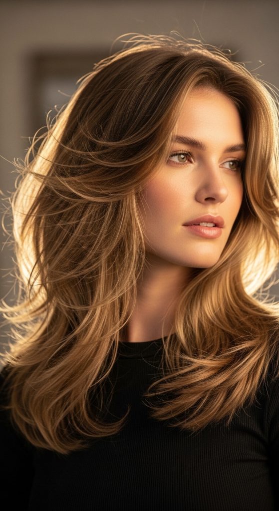 Layered long hair combined with soft waves creates a hairstyle that emphasizes movement and texture. Waves enhance the separation between layers, allowing each layer to become visible within the hairstyle. This effect produces depth and dimension, which helps prevent long hair from appearing flat.