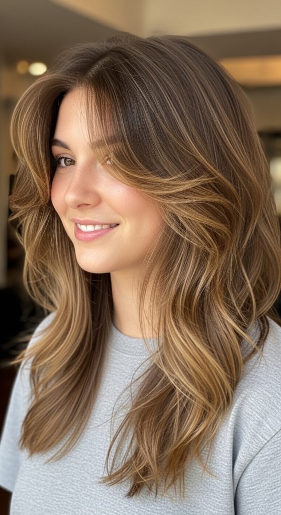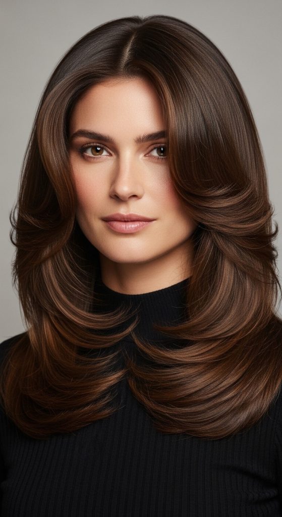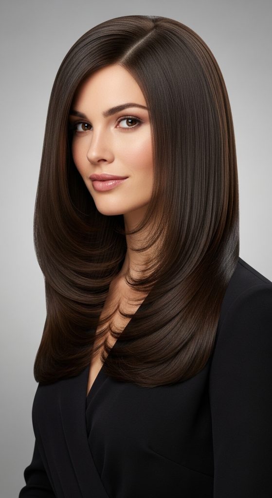 This style is frequently featured in Pinterest hairstyle inspiration because it provides a clean and timeless aesthetic. Long layers reduce bulk without sacrificing length, making the hair easier to style and maintain. The technique works well with straight and slightly wavy hair because the layers create natural separation between strands. This separation enhances shine and movement while preventing the hair from appearing flat.