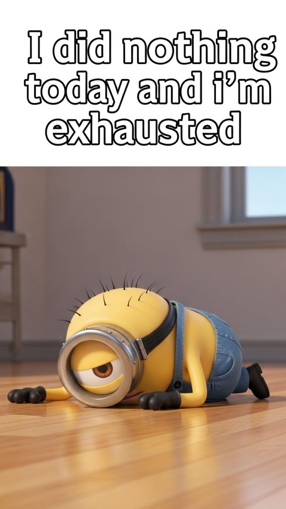 These memes usually show a Minion barely standing with captions like “I did nothing today and I’m exhausted.” It’s funny because it’s true—mental exhaustion doesn’t always come from physical work. Sometimes existing is enough to drain you.