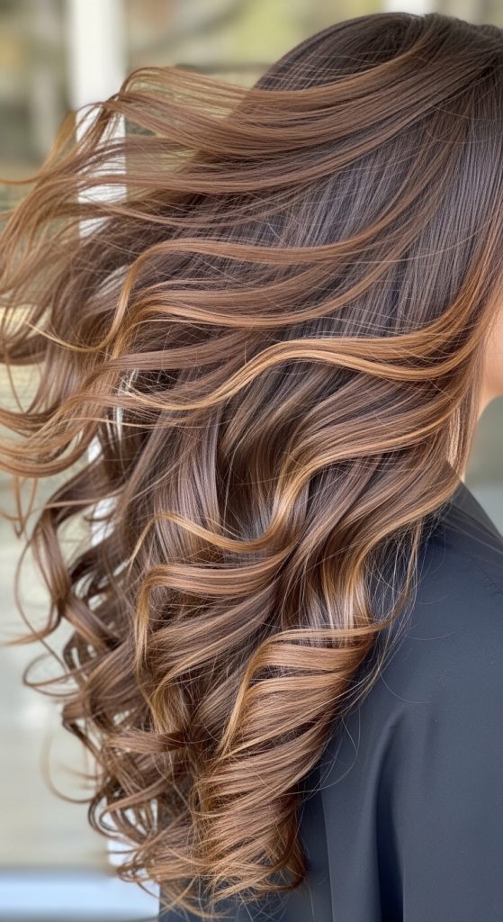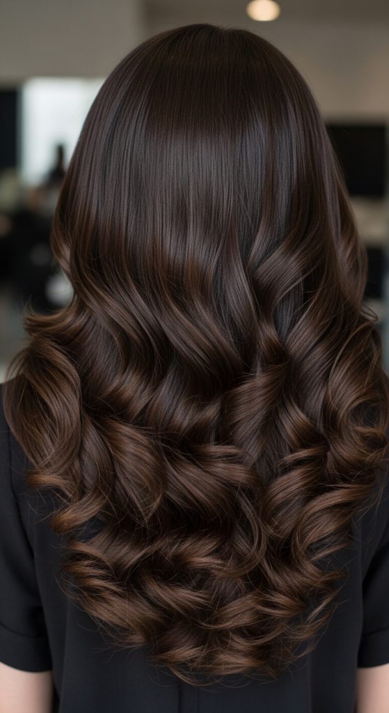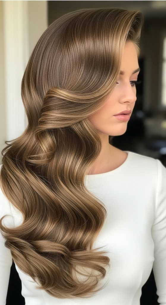 Full-length soft volume curls focus on enhancing the natural length of the hair while adding movement and structure. This hairstyle uses evenly distributed curls from the roots to the ends to prevent the hair from appearing flat or heavy. The volume is concentrated at the crown and mid-lengths, ensuring balance throughout the entire length. This concept aligns with Pinterest ideas because it highlights long hair while maintaining a clean and organized structure. The curls are loose and uniform, allowing the hair to flow naturally without tangling. This style works well for formal occasions because it creates a polished and controlled appearance. The structure ensures that the curls remain defined while still allowing flexibility in movement.