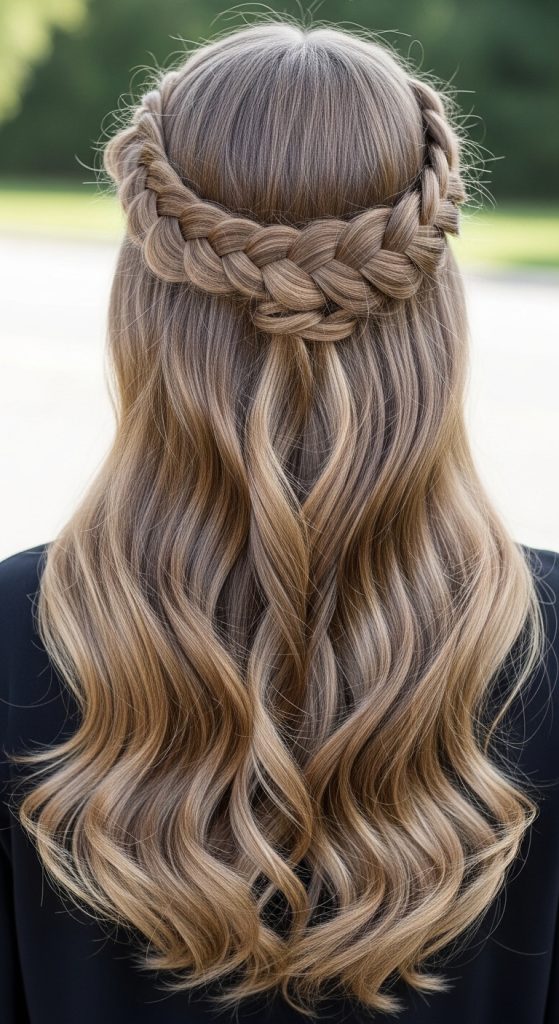 Idea 2: Half-Up Braided Crown with Curls