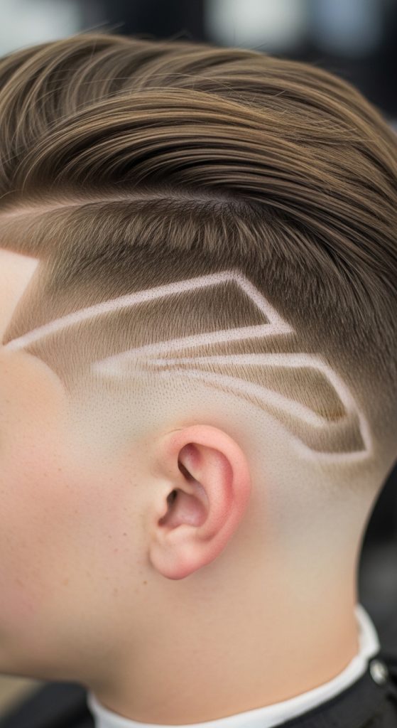 This design incorporates patterns into the undercut, adding detail and personalization. Shapes such as lines or angles create visual interest.