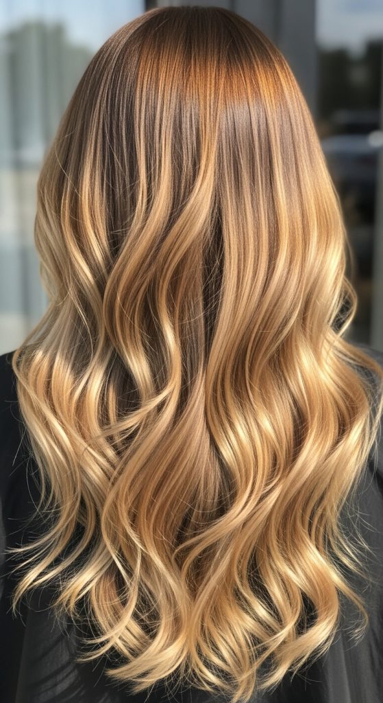Because the tone variations remain within a warm color palette, the final result appears cohesive and harmonious. This quality makes golden honey blend balayage a common choice in modern hair design trends.