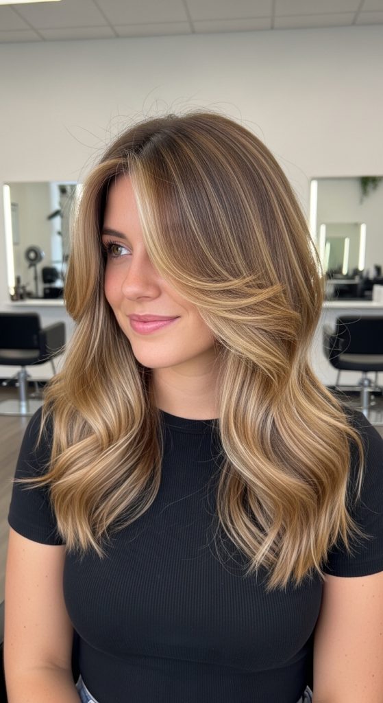 In this cut, long blended layers begin below the chin and gradually cascade through the mid-lengths. These layers remove excess weight that can pull waves downward. Instead of collecting bulk at the bottom, your waves separate into defined, airy sections that look intentional and healthy. The blending is key — too many short layers can cause frizz, but long layers create elegance and fluidity.